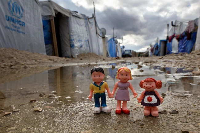 On April 9th, Artscoops will offer two WAR-TOYS prints at an art auction in Beirut. All proceeds from the sale of the prints will benefit the Kayany Foundation and fund an art therapy program at their schools for Syrian refugees in Lebanon. Both photographs were created in collaboration with boys and girls under the care of Kayany in 2014. Reproductions of the children's drawings that served as art direction and inspiration are included in the sale.